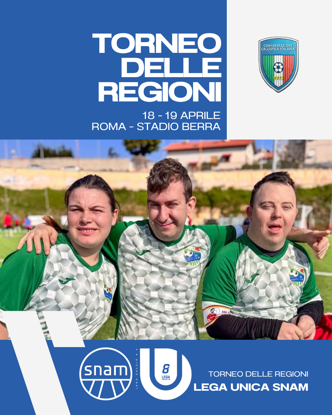 Parte la nuova edizione del Torneo delle Regioni – Lega Unica Snam, evento nazionale dedicato ai ragazzi con disabilità promosso dalla Lega Calcio a 8 e dalla Confederazione Calcistica Italiana, in programma il 18 e 19 aprile allo Stadio Alfredo Berra di Roma, impianto simbolo del calcio a 8 nazionale.